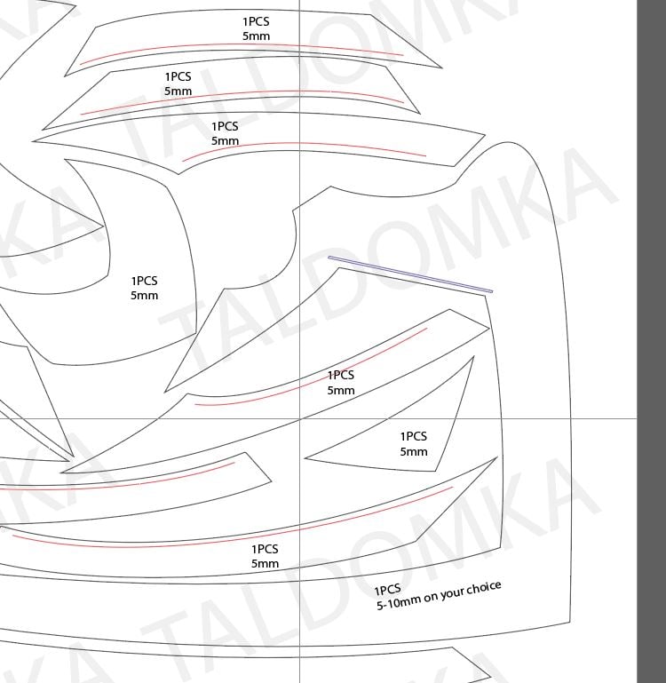 The template is specially designed to use EVA foam material, known for its durability and flexibility. This ensures convenience and comfort when wearing, as well as safety during active activities. The material has a high degree of cushioning, which makes it an ideal choice for creating a realistic and impressive look.